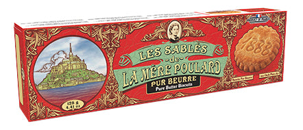 Gebäcktradition aus der Normandie! “La mère Poulard“ gehört untrennbar zur Geschichte des Mont Saint Michel. Zusammen mit ihrem Mann Victor erfüllte sich die berühmte französische Köchin Annette Poulard ihren Traum und gründete im Jahre 1888 ihr Gasthaus auf dem Mont-Saint-Michel. Schon früh begann sie Gerichte für Pilger, Gäste und berühmte Persönlichkeiten zuzubereiten und wurde schnell eine respektierte und beliebte Köchin ihrer Zeit. In mehr als 40 Jahren kreierte sie zahlreiche Rezepte, die in ganz Frankreich und schließlich auch weltweit berühmt wurden. Heute bietet “La mère Poulard“ ein Schlemmersortiment an, das auf dieses Können und die über hundertjährige Erfahrung zurückgreift. Die französischen Backwaren werden nach traditionellen und geheimen Familienrezepten hergestellt. Die berühmten Kekse, ohne Zusatzstoffe und künstliche Aromen, entstehen aus erlesenen und natürlichen Zutaten, die direkt aus Frankreich stammen. • Herstelleranschrift: Biscuiterie la mère Poulard, Zone de Saint-Eustache, 35460 Maen Roch, Frankreich •