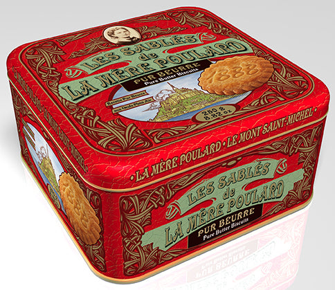 Gebäcktradition aus der Normandie! “La mère Poulard“ gehört untrennbar zur Geschichte des Mont Saint Michel. Zusammen mit ihrem Mann Victor erfüllte sich die berühmte französische Köchin Annette Poulard ihren Traum und gründete im Jahre 1888 ihr Gasthaus auf dem Mont-Saint-Michel. Schon früh begann sie Gerichte für Pilger, Gäste und berühmte Persönlichkeiten zuzubereiten und wurde schnell eine respektierte und beliebte Köchin ihrer Zeit. In mehr als 40 Jahren kreierte sie zahlreiche Rezepte, die in ganz Frankreich und schließlich auch weltweit berühmt wurden. Heute bietet “La mère Poulard“ ein Schlemmersortiment an, das auf dieses Können und die über hundertjährige Erfahrung zurückgreift. Die französischen Backwaren werden nach traditionellen und geheimen Familienrezepten hergestellt. Die berühmten Kekse, ohne Zusatzstoffe und künstliche Aromen, entstehen aus erlesenen und natürlichen Zutaten, die direkt aus Frankreich stammen. • Herstelleranschrift: Biscuiterie la mère Poulard, Zone de Saint-Eustache, 35460 Maen Roch, Frankreich •