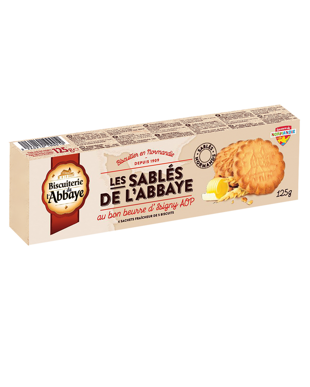 Der Ursprung des sablé geht zurück ins 18. Jahrhundert. Es war ein sehr beliebtes Gebäck, welches wie Sand zerbröselte wenn man es aß. Gegen 1870 wurde der Begriff “sablé´“ im Wörterbuch von Littré erwähnt, wo er ihn als “Art Kuchen aus der Normandie“ beschrieb. Vor mehr als einem Jahrhundert stellte der Bäcker Virgile Fouilleul in dem kleinen Dorf Lonlay l´Abbaye zwischen zwei Brotladungen sablés in kleinen Backförmchen her, welche der Dorfschmied für ihn gegossen hatte. Sie wurden vor Ort verkauft oder an die Soldaten an die Front geschickt. Nach seinem Tod übernahm der Schwiegersohn Georges Lautour die Geschäfte. Nach seiner Rückkehr aus dem 2. Weltkrieg entschied er sich, das Werk seines Schwiegervaters fort zu führen. Seine Ehefrau überlieferte ihm die die Rezepte. Die kleinen Bauernbetriebe aus seinem Ort belieferten ihn mit frischen Zutaten aus der Region. Der Bekanntheitsgrad des Sablé de l´Abbaye wuchs stetig. Obwohl das bescheidene Unternehmen sablés nach Paris lieferte, schaffte es die Firma nicht Georges, seinem Sohn Michel und seinem Schwiegersohn Michel Lebaudy ein ausreichendes Einkommen zu gewährleisten. Daher beschlossen die beiden jungen Bäcker gemeinsam eine Bäckerei zu gründen. So begann 1964 die Geschichte der Biscuiterie de l´Abbaye. 1968 wurde das Unternehmen mit dem blauen Band Intersuc ausgezeichnet. Diese Auszeichnung des besten Keks auf der internationalen Messe in Paris bedeutete den Durchbruch für die Firma. Heute leitet der Urenkel von Virgile Fouilleul das Unternehmen. • Herstelleranschrift: Biscuiterie de l'Abbaye S.A.S, route du val, 61700 Lonlay L'Abbaye, Frankreich •