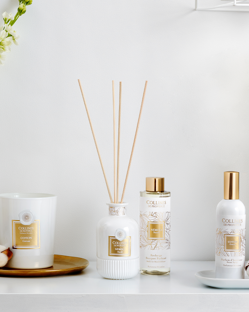 Die Provence - Eine wahre Quelle für Düfte der Natur! Es gibt ein Land der Farben und der Sonne, wo die wahre Natur noch existiert. Es gibt ein Land der Düfte, wo die Kräuter noch schön und wild sind. Dieses Land ist die Haute-Provence. Genau dort, in dem malerischen Ort Mane en Provence ist das kleine Familienunternehmen Collines de Provence beheimatet. Seit mehr als 25 Jahren schon weht dort ein Wind der Inspiration, wie eine Hommage an die Schätze einer einmaligen Flora: wilde Iris, Zystrose, frische Feigen, Rosmarin, Eisenkraut. Um die besten Blütenblätter, die schönsten Beeren, und die Blätter, welche am reichhaltigsten an wertvollen Essenzen sind auszuwählen, muß man nicht nur Parfumeur, sondern auch Botaniker sein. Inspiriert von den Düften der provenzalischen Landschaft, inmitten duftender Lavendelfelder, aromatischer Kräuter und zarter Blumendüfte kreiern die Mitarbeiter von Collines de Provence natürliche, sinnliche Düfte. Bei der sorgfältigen Auswahl der Duftnoten und der Inhaltstoffe legen die Parfümeur-Botaniste größten Wert auf Qualität und Natürlichkeit. Bei Collines werden die besten Inhaltsstoffe aus der Natur verwendet, um einzigartige Raumdüfte, handgefertigte Kerzen oder natürliche Körperpflegeartikel herzustellen. Im Sortiment befinden sich aber auch Düfte, die über die Grenzen Frankreichs hinausgehen und Noten und Aromen weit entfernter Länder, einen Hauch Exotik und Abenteuer in ihrem Bukett tragen. So entstehen neue spannende Kreationen, die Ihnen die Düfte der Provence und anderer ferner Länder ins Haus bringen.