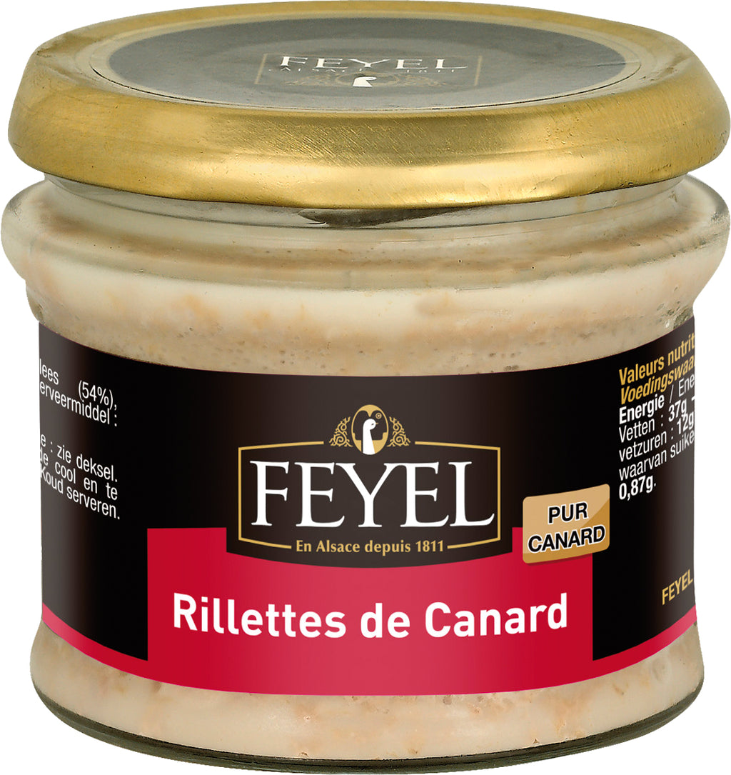Entenfleisch, Entenfett, Wasser, gebratene Zwiebel (Zwiebel, Sonnenblumenöl), Pfeffer, Salz, Thymian, Knoblauch