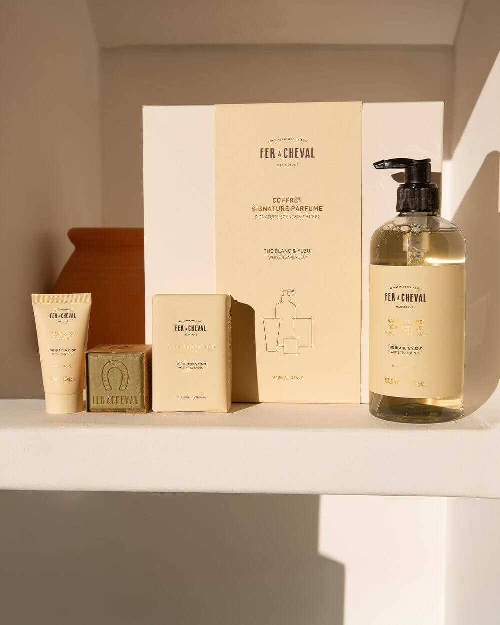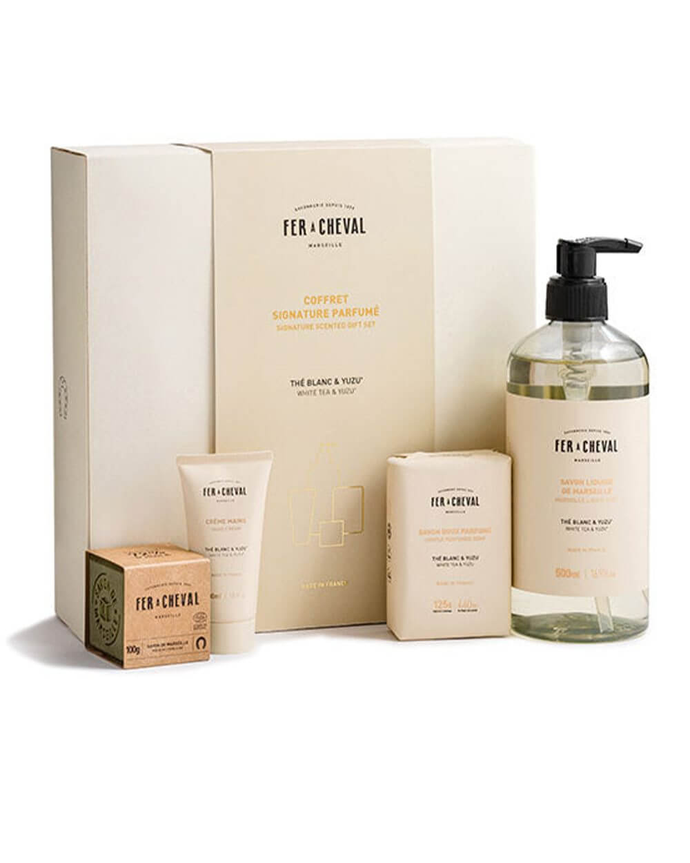 Fer à Cheval ist die älteste und größte Seifenfabrik in Marseille, welche seit mehr als 160 Jahren die berühmten, echten Savon de Marseille produziert. Nach dem Label “Entreprise du patrimoine vivant“ (Unternehmen des lebendigen Kulturerben) und der Initiative einer Auszeichnung IGP (Indication Géographique Protégée) für den Schutz der echten Marseiller Seife, wurde das Unternehmen mit dem Label “Monument Historique“ ausgezeichnet. Nur 90 Monumente und Gebäude in Marseille erhielten bisher wegen ihrer künstlerischen, architektonischen oder historischen Bedeutung diese Auszeichnung, unter anderem das Château d´If, der Fort Saint Jean, die Kathedrale Vieille Major und die Cité radieuse. Fer à Cheval ist die einzige Seifenfabrik, die diese Auszeichnung erhalten hat. Die Seifenfabrik wurde 1856 gegründet und erlebte im 19. Jahrhundert das goldene Zeitalter der Marseiller Seife. Im letzten Jahrhundert dann kämpfte die Fabrik mit der Konkurrenz der synthetischen Seifen. Einen neuen Aufschwung erlebte die Fabrik dann zu Beginn des 21. Jahrhunderts. Seit 2011 gehört La Savonnerie du Fer à Cheval zusammen mit den Partnerunternehmen La Maison du Savon de Marseille und La Nouvelle Compagnie des Détergents der “Union des Professionnels du Savon de Marseille“ an, die das Label “Savon de Marseille“ garantiert. 2 Brüder, Raphaël et Yannick Seghin, haben inzwischen die Leitung des Unternehmens übernommen und begleiten es in ein modernes Zeitalter, immer bemüht das traditionelle Wissen der Seifenherstellung und den kulturellen Wert der Produktionsstätte zu erhalten. Fer à Cheval ist ein lebendiges und aktives Zeugnis der industriellen Vergangenheit von Marseille. Das Unternehmen respektiert und führt das handwerkliche know-how weiter, welches von den Seifenherstellern von Generation zu Generation weitergegeben wird. Das Geheimnis der traditionellen Herstellung der Marseiller Seife wird sorgsam gehütet und bleibt bis heute unverändert. Die Mitarbeiter von Fer à Cheval arbeiten mit Leidenschaft und vollem Engagement um eine Marseiller Seife von höchster Qualität herzustellen, ganz ohne Konservierungsstoffe, Farbstoffe, Duftstoffe und tierische Fette. “Unsere Seife ist nicht perfekt, sie lebt.“
