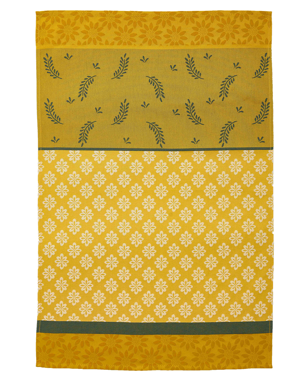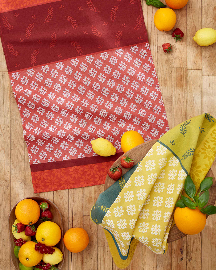 Hören Sie den Klang der Zikaden? Ja, Sie sind in der Provence, inmitten unseres idyllischen Dorfes voller Ruhe. Eine farbenfrohe Kulisse mit üppiger Vegetation diente als Inspiration für dieses Küchentuch mit spritzigen Zitrusnoten. Ein lebendiges Spiel aus Gelb-, Blau- und Grüntönen erinnert an die Früchte der Region, während das Design „Bastide“ in leuchtenden zitronengelben Nuancen erstrahlt.