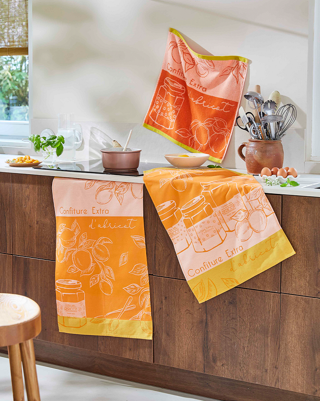 Das Geschirrtuch "Délice d'Abricots" entführt Sie mit seinen warmen Farbtönen und zarten Mustern auf einen sanften Sommerspaziergang durch die Obstgärten. Mit seiner subtilen Poesie bringt es eine sonnige, fröhliche Note in Ihre Küche.