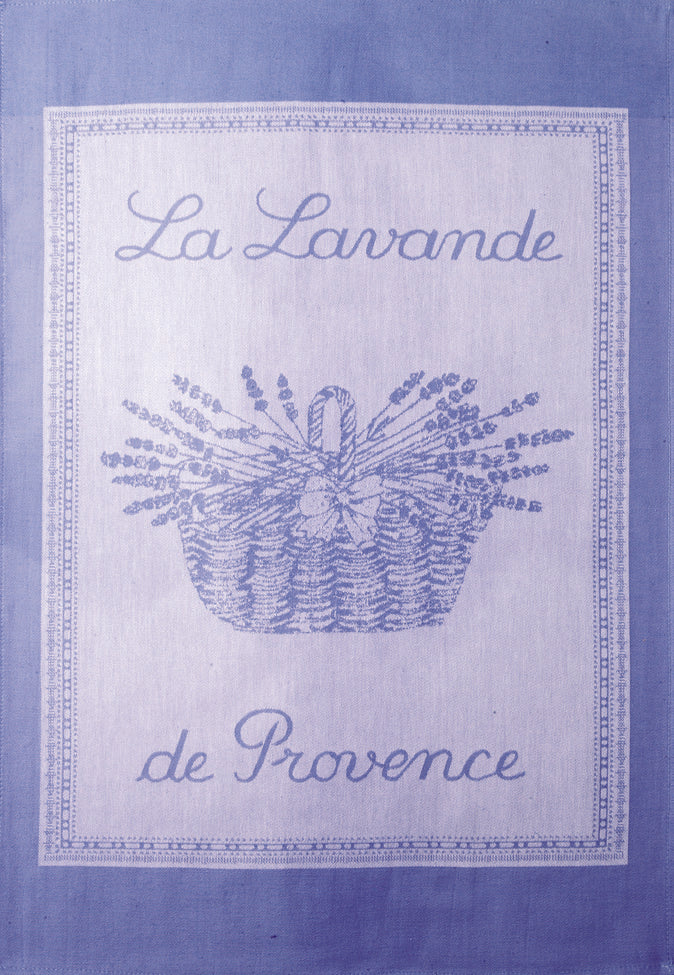 Was wäre die Provence ohne Lavendel? Die blauen Lavendelfelder bezaubern die Menschen seit Jahrhunderten mit ihrem einzigartigen Duft. Dieses Geschirrtuch in fröhlichen Blautönen steht ganz unter dem Symbol des blauen Goldes der Provence. Ein Geschirrtuch mit einem kräftigen blauen Rand. In der Mitte prangt ein Korb mit Lavendelzweigen.