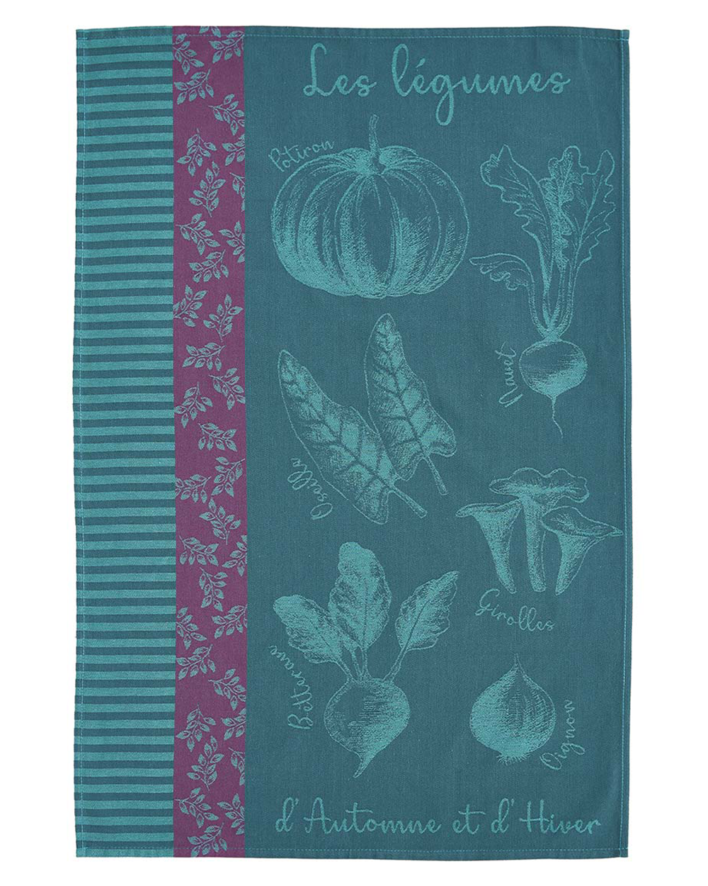 Das Geschirrtuch "Gemüsegarten" zelebriert die herbstlichen und winterlichen Schätze der Natur. Kürbis, Rote Bete und Pfifferlinge prägen diese kulinarische Komposition, die den Reichtum der Saison widerspiegelt. Vor einem tiefen, warmen Farbhintergrund entfalten sich die Zutaten in voller Pracht. Ein charmant rustikales Ensemble, das die Produkte der Erde, die Authentizität und die festliche Stimmung des Jahresendes ehrt..