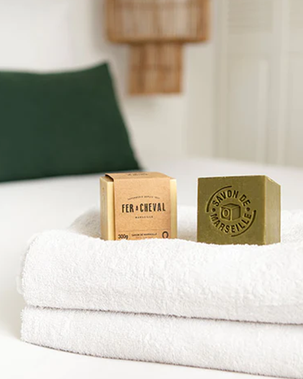 Fer à Cheval ist die älteste und größte Seifenfabrik in Marseille, welche seit mehr als 160 Jahren die berühmten, echten Savon de Marseille produziert. Nach dem Label “Entreprise du patrimoine vivant“ (Unternehmen des lebendigen Kulturerben) und der Initiative einer Auszeichnung IGP (Indication Géographique Protégée) für den Schutz der echten Marseiller Seife, wurde das Unternehmen mit dem Label “Monument Historique“ ausgezeichnet. Nur 90 Monumente und Gebäude in Marseille erhielten bisher wegen ihrer künstlerischen, architektonischen oder historischen Bedeutung diese Auszeichnung, unter anderem das Château d´If, der Fort Saint Jean, die Kathedrale Vieille Major und die Cité radieuse. Fer à Cheval ist die einzige Seifenfabrik, die diese Auszeichnung erhalten hat. Die Seifenfabrik wurde 1856 gegründet und erlebte im 19. Jahrhundert das goldene Zeitalter der Marseiller Seife. Im letzten Jahrhundert dann kämpfte die Fabrik mit der Konkurrenz der synthetischen Seifen. Einen neuen Aufschwung erlebte die Fabrik dann zu Beginn des 21. Jahrhunderts. Seit 2011 gehört La Savonnerie du Fer à Cheval zusammen mit den Partnerunternehmen La Maison du Savon de Marseille und La Nouvelle Compagnie des Détergents der “Union des Professionnels du Savon de Marseille“ an, die das Label “Savon de Marseille“ garantiert. 2 Brüder, Raphaël et Yannick Seghin, haben inzwischen die Leitung des Unternehmens übernommen und begleiten es in ein modernes Zeitalter, immer bemüht das traditionelle Wissen der Seifenherstellung und den kulturellen Wert der Produktionsstätte zu erhalten. Fer à Cheval ist ein lebendiges und aktives Zeugnis der industriellen Vergangenheit von Marseille. Das Unternehmen respektiert und führt das handwerkliche know-how weiter, welches von den Seifenherstellern von Generation zu Generation weitergegeben wird. Das Geheimnis der traditionellen Herstellung der Marseiller Seife wird sorgsam gehütet und bleibt bis heute unverändert. Die Mitarbeiter von Fer à Cheval arbeiten mit Leidenschaft und vollem Engagement um eine Marseiller Seife von höchster Qualität herzustellen, ganz ohne Konservierungsstoffe, Farbstoffe, Duftstoffe und tierische Fette. “Unsere Seife ist nicht perfekt, sie lebt.“