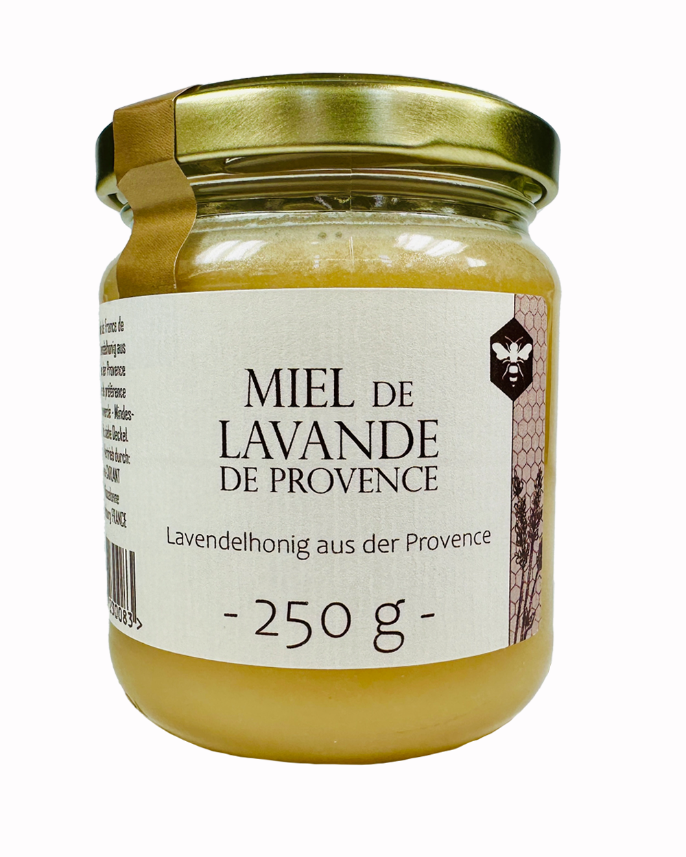 100% Lavendelhonig -------- Der Honig ist IGP geschützt und darf sich deshalb Miel de Provence nennen. IGP (Indication Géographique Protégée) ist eine geschützte geographische Bezeichnung und wurde von der Europäischen Union herausgegeben. Um das IGP-Label zu erhalten, muss der Imker Proben jeder Ernte an ein offizielles Institut senden, das eine Pollenanalyse durchführt und dann erst das Label zusammen mit einem Zertifikat und einer Kontrollnummer vergibt. Damit ist gewährleistet, dass sich in Provence-Honigen nur Tracht aus ganz bestimmten regionalen Pflanzen befindet. Sinn und Zweck dieses Labels ist es, die provenzalischen Imker zu schützen und gleichzeitig den Verbrauchern Qualität und Transparenz zu garantieren. Die Imker erhalten darüber hinaus regelmäßig Kontrollbesuche.