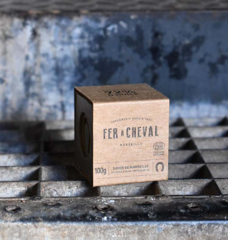 Fer à Cheval ist die älteste und größte Seifenfabrik in Marseille, welche seit mehr als 160 Jahren die berühmten, echten Savon de Marseille produziert. Nach dem Label “Entreprise du patrimoine vivant“ (Unternehmen des lebendigen Kulturerben) und der Initiative einer Auszeichnung IGP (Indication Géographique Protégée) für den Schutz der echten Marseiller Seife, wurde das Unternehmen mit dem Label “Monument Historique“ ausgezeichnet. Nur 90 Monumente und Gebäude in Marseille erhielten bisher wegen ihrer künstlerischen, architektonischen oder historischen Bedeutung diese Auszeichnung, unter anderem das Château d´If, der Fort Saint Jean, die Kathedrale Vieille Major und die Cité radieuse. Fer à Cheval ist die einzige Seifenfabrik, die diese Auszeichnung erhalten hat. Die Seifenfabrik wurde 1856 gegründet und erlebte im 19. Jahrhundert das goldene Zeitalter der Marseiller Seife. Im letzten Jahrhundert dann kämpfte die Fabrik mit der Konkurrenz der synthetischen Seifen. Einen neuen Aufschwung erlebte die Fabrik dann zu Beginn des 21. Jahrhunderts. Seit 2011 gehört La Savonnerie du Fer à Cheval zusammen mit den Partnerunternehmen La Maison du Savon de Marseille und La Nouvelle Compagnie des Détergents der “Union des Professionnels du Savon de Marseille“ an, die das Label “Savon de Marseille“ garantiert. 2 Brüder, Raphaël et Yannick Seghin, haben inzwischen die Leitung des Unternehmens übernommen und begleiten es in ein modernes Zeitalter, immer bemüht das traditionelle Wissen der Seifenherstellung und den kulturellen Wert der Produktionsstätte zu erhalten. Fer à Cheval ist ein lebendiges und aktives Zeugnis der industriellen Vergangenheit von Marseille. Das Unternehmen respektiert und führt das handwerkliche know-how weiter, welches von den Seifenherstellern von Generation zu Generation weitergegeben wird. Das Geheimnis der traditionellen Herstellung der Marseiller Seife wird sorgsam gehütet und bleibt bis heute unverändert. Die Mitarbeiter von Fer à Cheval arbeiten mit Leidenschaft und vollem Engagement um eine Marseiller Seife von höchster Qualität herzustellen, ganz ohne Konservierungsstoffe, Farbstoffe, Duftstoffe und tierische Fette. “Unsere Seife ist nicht perfekt, sie lebt.“