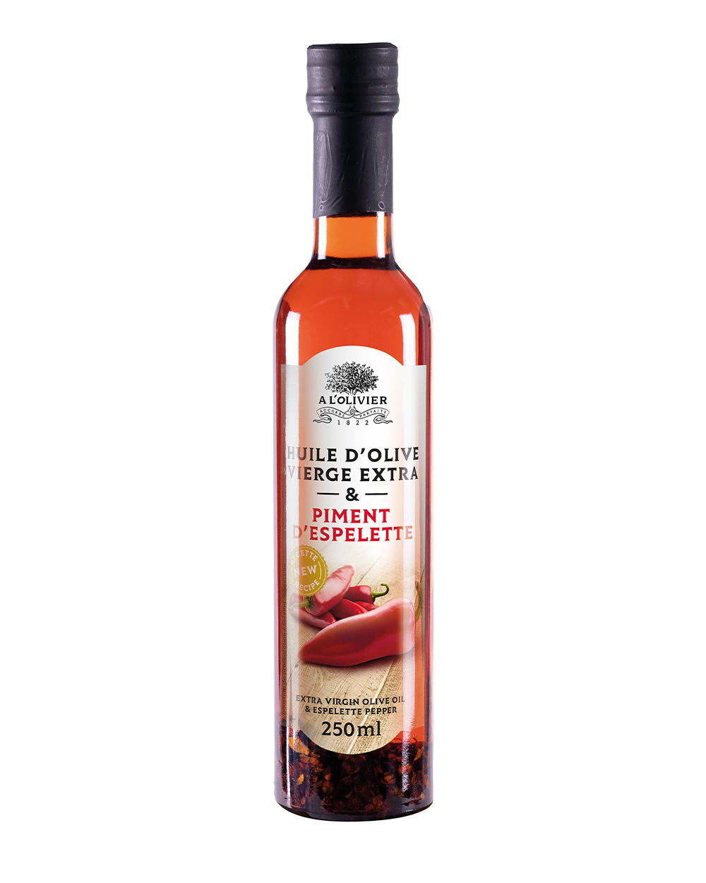 Olivenöl vierge extra 98%, natürliches Tomatenextrakt 1%, Piment d'Espelette