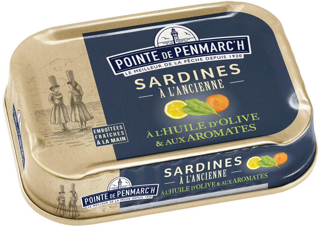 Im Südwesten der Bretagne, im département Finistère liegt die Baie de Douarnenez mit ihrer atemberaubenden landschaftlichen Vielfalt und seinem für den Sardinenfischfang berühmten Fischerhafen. Ganz in der Nähe des Hafens befindet sich die Fischfabrik “ Pointe de Penmarc´h“. 1920 wurde die Konservenfabrik “ Pointe de Penmarc´h“ in Guilvinec gegründet. Während früher die Fischer mit Segelbooten aufs Meer hinausfuhren, erfolgt heute der Fischfang mit modernen Schiffen, die einen selektiven und rücksichtsvollen Fischfang garantieren. Sobald die Flotte mit mehr als 100 Fischerbooten nach einem erfolgreichen Fang im Hafen eingelaufen war, wurde der Fisch mit großer Sorgfalt verarbeitet und fangfrisch von Hand in die Konserven abgefüllt. Noch heute folgt das Unternehmen dieser Tradition. 2003 zog die Fischfabrik von Guilvinec nach Douarnenez um, der Hochburg der Sardine. Das Abfüllen in die Konserven erfolgt manuell von den sogenannten “Penn Sardin“. So nennt man heute noch die Bretoninnen, die die Sardinen in den Fabriken in den Häfen von Douarnenez verarbeiten. “Penn Sardin“ bedeutet “Sardinenkopf“ auf bretonisch. Die Mitarbeiterinnen waren, und sind es immer noch, bekannt für ihre Liebe zu ihrer Arbeit und für ihren willensstarken Charakter. Das Unternehmen bietet seine Produkte sowohl über den stationären Handel in zahlreichen Feinkostläden an als auch über den Online-Handel. Pointe de Penmarc´h: • legt Wert auf einen rücksichtsvollen Fischfang und ist sich bewußt, daß die Meeresreserven nicht unerschöpflich sind. • respektiert den saisonalen Fischfang der diversen Fischarten. Die Sardinen werden zwischen Juni und November gefischt, die Makrelen von Mitte November bis Mitte April. • schließt den Fischfang der bedrohten Arten aus. • verwertet auch die weniger bekannten Fischteile, wie z.B. Seeteufelleber, welche geschmacklich sehr wertvoll sind und einen hohen Ernährungswerte haben. • bevorzugt die Ringwadenfischerei für den Sardinenfang. • Herstelleranschrift: La Pointe de Penmarc’h, 15 Bd de la France libre, 29100 Douarnenez, Frankreich •