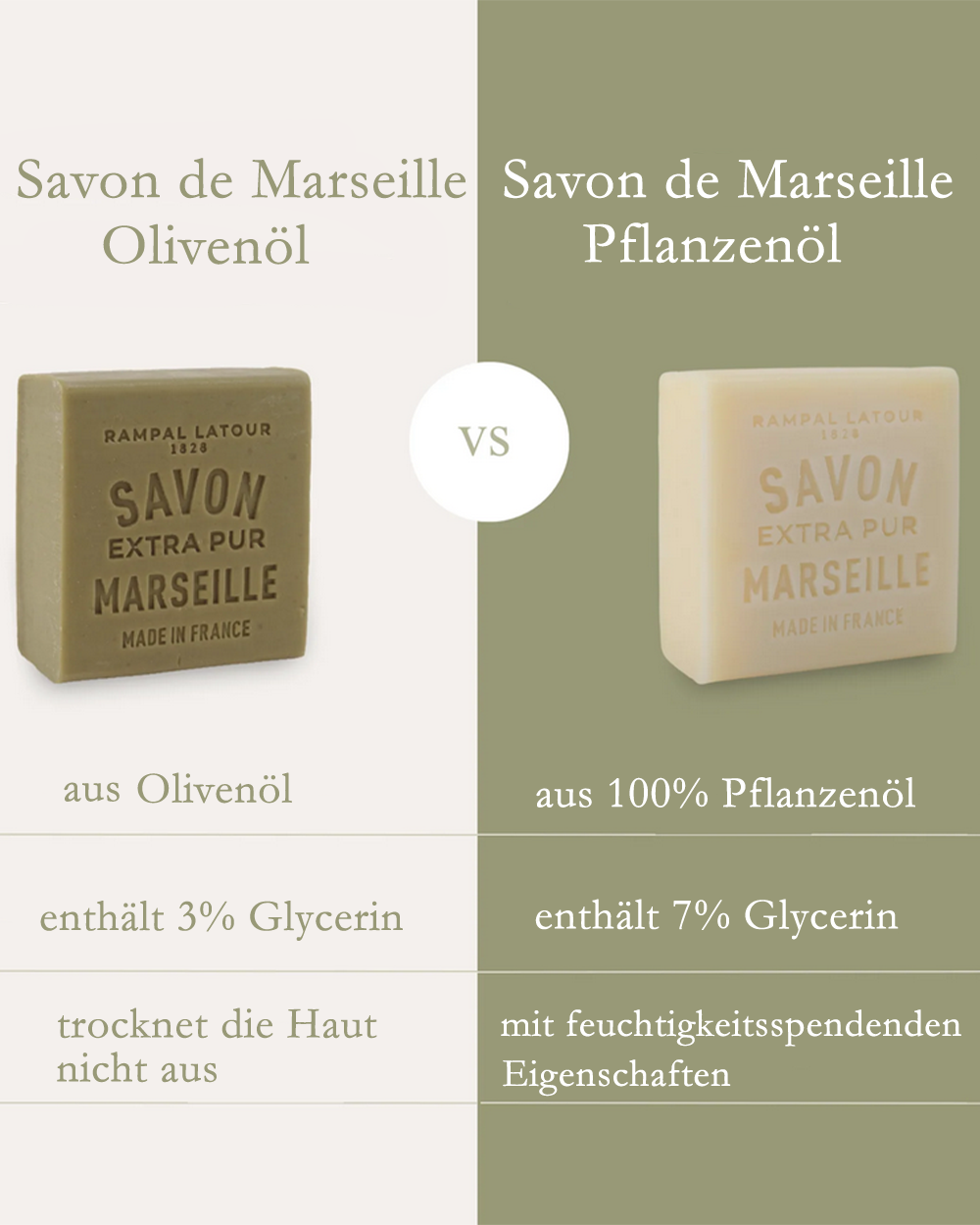 Die Geschichte von Rampal Latour beginnt im Jahr 1828, als Pierre Rampal “Maître Savonnier“ in der Seifenfabrik Court-de-Payen in Marseille wurde. Seine Erben zogen später nach Salon-de-Provence. Dort eröffnete 1907 sein Enkel Pierre Rampal die Seifenfabrik “Rampal-Fils“ in der Rue Félix Pyat. 100 Jahre später übergab René Rampal, Enkel von Pierre Rampal, seine handwerkliche Seifenfabrik “Rampal Patou“ an die Familie von Jean-Louis Plot. Eine neue Marke war geboren: “Rampal Latour“. Seit 1828 und der Errungenschaft der Goldmedaille im Jahre 1900 auf der Weltausstellung in Paris, sind 5 Generationen einander gefolgt. Das Geheimnis von Rampal Latour? Lust auf Innovation und auf die ständige Modernisierung des Produktionswerkzeugs. All dies unter Wahrung der Qualität und Achtung der Tradition.