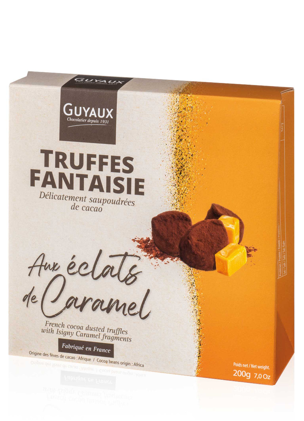 1931 gründete der in Belgien geborene Florent Guyaux das Unternehmen “Chocolaterie Guyaux“. Das Handwerk der Pralinenherstellung hatte er bei seinem Onkel in der Wallonie erlernt. Am Anfang bestand die Produktion lediglich aus einigen Sorten Schokoladenbonbons und Fruchtbonbons, die ausschließlich in der Region rund um Paris verkauft wurden. Die Schokoladenfabrik ist eine der wenigen unabhängigen Unternehmen auf der Ile de France und wird heute in zweiter und dritter Generation geleitet. Die Chocolaterie befindet sich 15 km von Paris entfernt, in Andilly, einem kleinen Dorf am Fuße des Waldes von Montmorency,, der wiederum angrenzt an das bekannte Thermalbad Enghien-les-Bains, berühmt für seinen See und das Casino. GUYAUX bietet eine große Vielfalt an hochwertigen "Truffes Fantaisie"-Varianten und Schokoladenbonbons an. Auch einige BIO-Produkte gehören zum Sortiment des Familienunternehmens, das seine Waren inzwischen weltweit verkauft. • Herstelleranschrift: Chocolaterie Jaques GUYAUX SAS, 1 Avenue des Cures, 95580 Andilly, Frankreich •