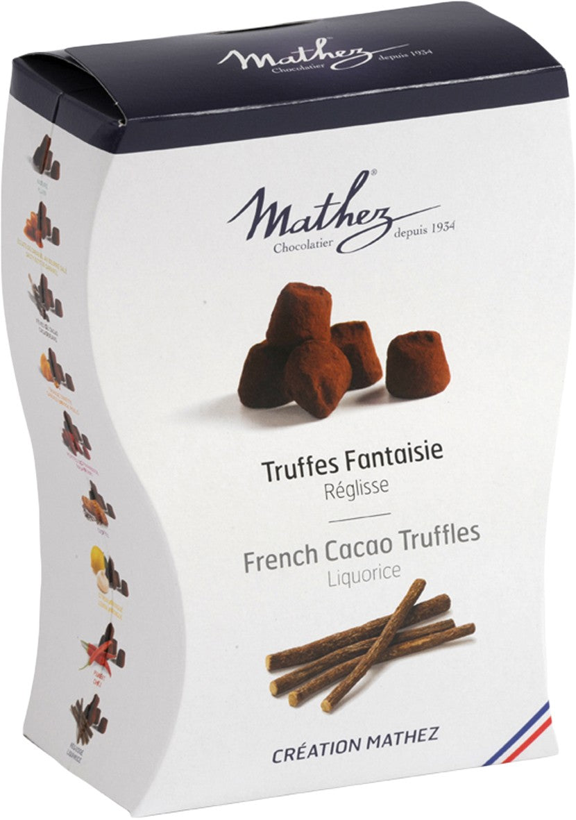 Chocolat Mathez S.A., meisterlicher Schokoladenhersteller seit 1934, ist spezialisiert in der Produktion von raffiniert gewürzten Schokoladentrüffel nach überlieferten Rezepten. In den 80 Jahren seiner Firmengeschichte hat sich Chocolats Mathez einen renommierten Namen erarbeitet und steht heute an der Spitze der französischen Trüffelkunst. Das an der Loire ansässige Unternehmen stellt in handwerklicher Fertigung feinste Schokoladen-Trüffel mit raffinierten Rezepturen her. Mit seiner Vielfalt an Trüffel bietet Mathez ein außergewöhnliches Geschmackserlebnis für Kenner und Genießer. Diese verführerische Trüffelkreation ist eine weitere leckere Komposition des französischen Chocolatiers. Die Truffes Fantaisie von Mathez werden in einer raffinierten, außergewöhnlichen Verpackung geliefert. Sie eignen sich somit hervorragend als kleine aber sehr feine Geschenkidee für gute Freunde und Familie. • Hersteller: Chocolat Mathez, 3, Parc d´Activités Saint Jean, 49330 Châteauneuf-sur-Sarthe, Frankreich •