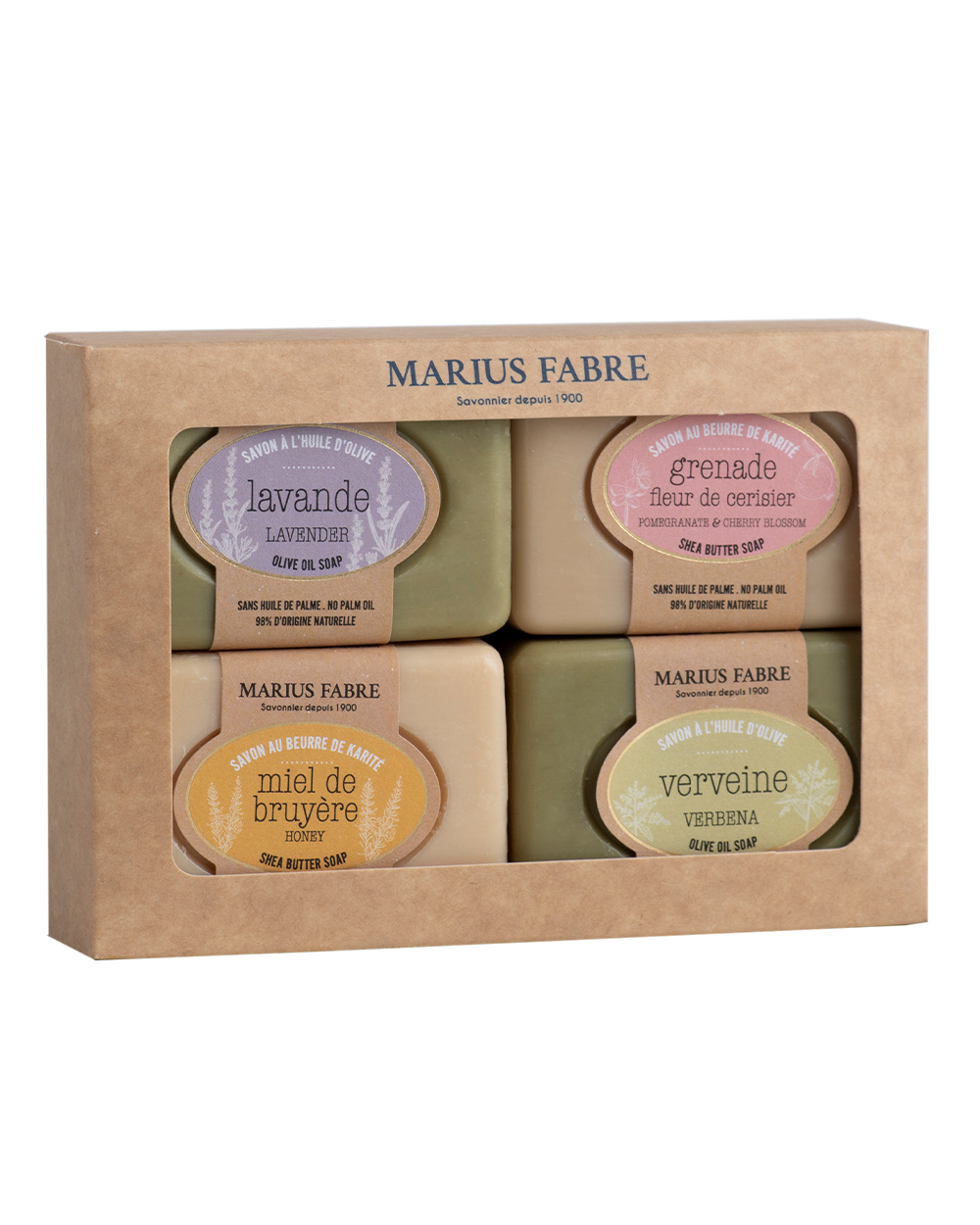 Im Jahre 1900 gründete Marius Fabre die Seifenfabrik in Salon-de-Provence. Vier Generationen später verfolgen die beiden Urenkelinnen Marie und Julie Bousquet-Fabre mit derselben Leidenschaft dieses Familienwagnis. Noch heute wird die Seife unter Beachtung der Herstellungsvorschriften, die von Ludwig XIV. festgelegt wurden,in der Seifensiederei hergestellt. Know-how, Geduld und ein hoher Anspruch sind die Regeln einer Kunst, die es der Seifensiederei Marius Fabre ermöglichen, eine Marseiller Seife von stets unübertroffener Qualität anzubieten. Marius Fabre garantiert ein natürliches Produkt, das für den Menschen gesund und schonend zur Umwelt ist.