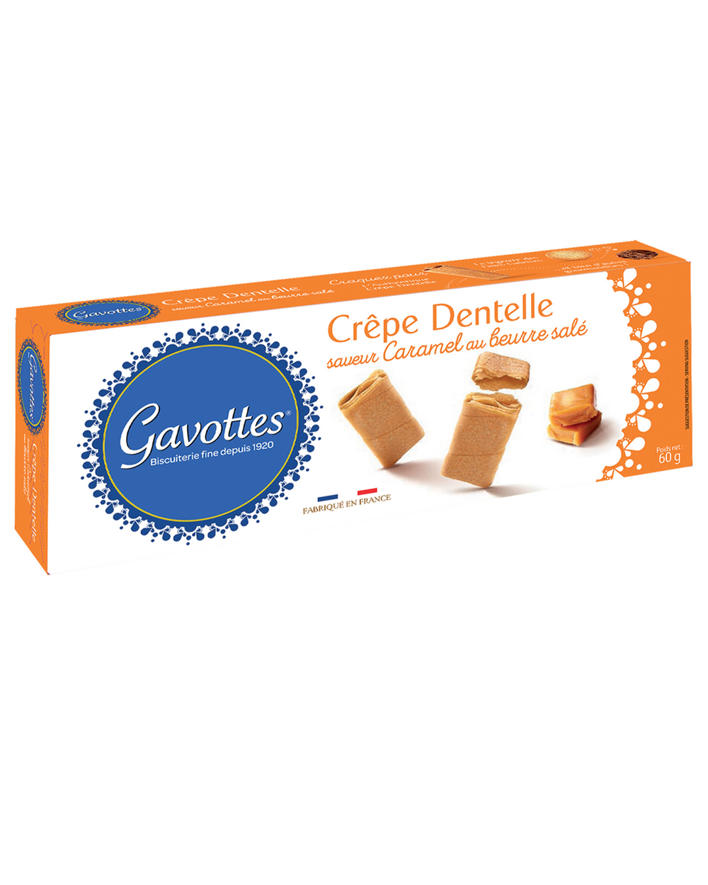 1886: Stellen Sie sich die Hektik in einer Küche in Quimper vor! Die Köchin vergißt vor lauter Stress eine crêpe auf dem Billig. Einfach wegschmeißen? Nein, das geht nicht. Marie-Catherine Cornic rollt sie auf und probiert sie. Welch ein Genuß! Diese Leichtigkeit, diese goldene Farbe. Das war die Geburtsstunde der crêpes dentelle. 1920: in diesem Jahr wurde die Biscuiterie Gavottes im Viertel Loc Maria gegründet. Die Mitarbeiterinnen rollen von Hand die crêpes dentelle auf. Genau 8x, wie bei dem berühmten bretonischen Tanz, die Gavotte. 1950: Die 50er Jahre waren der Beginn der Industrialisierung in der Biscuiterie Gavottes, mit einem weltweit einzigartigen Verfahren. In einer Stunde erhöhte sich der Ertrag von 100 crêpes auf 1500 Stück pro Mitarbeiter. 1962: Die beliebten crêpes dentelle wurden weltweit verschickt. Schnell wurde es eng in der kleinen Fabrik in Quimper. Das Unternehmen zog nach Dinan, wo ein neues Werk von 4.500 m2 entstand. 1978: In den 70er Jahren entstand eine neue Variante: crêpes dentelle mit einer leckeren Füllung aus dunkler- oder Vollmilchschokolade. 2012: Immer auf der Suche nach neuen Geschmacksvarianten entwickelt Gavottes seit 2012 neue Produkte mit interessanten Füllungen wie Vanille aus Madagascar oder Karamell und gesalzener Butter. Seit kurzem erobert die Firma auch die Apéritifabteilung mit ihren herzhaften Snacks. • Herstelleranschrift: Gavottes Loc Maria Biscuits, CS 96307, 22106 Dinan Cedex, Frankreich •