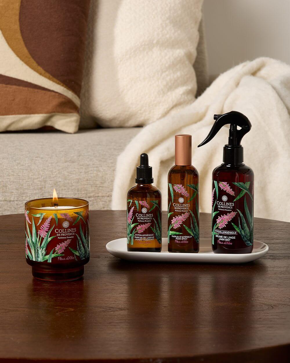 Die Provence - Eine wahre Quelle für Düfte der Natur! Es gibt ein Land der Farben und der Sonne, wo die wahre Natur noch existiert. Es gibt ein Land der Düfte, wo die Kräuter noch schön und wild sind. Dieses Land ist die Haute-Provence. Genau dort, in dem malerischen Ort Mane en Provence ist das kleine Familienunternehmen Collines de Provence beheimatet. Seit mehr als 25 Jahren schon weht dort ein Wind der Inspiration, wie eine Hommage an die Schätze einer einmaligen Flora: wilde Iris, Zystrose, frische Feigen, Rosmarin, Eisenkraut. Um die besten Blütenblätter, die schönsten Beeren, und die Blätter, welche am reichhaltigsten an wertvollen Essenzen sind auszuwählen, muß man nicht nur Parfumeur, sondern auch Botaniker sein. Inspiriert von den Düften der provenzalischen Landschaft, inmitten duftender Lavendelfelder, aromatischer Kräuter und zarter Blumendüfte kreiern die Mitarbeiter von Collines de Provence natürliche, sinnliche Düfte. Bei der sorgfältigen Auswahl der Duftnoten und der Inhaltstoffe legen die Parfümeur-Botaniste größten Wert auf Qualität und Natürlichkeit. Bei Collines werden die besten Inhaltsstoffe aus der Natur verwendet, um einzigartige Raumdüfte, handgefertigte Kerzen oder natürliche Körperpflegeartikel herzustellen. Im Sortiment befinden sich aber auch Düfte, die über die Grenzen Frankreichs hinausgehen und Noten und Aromen weit entfernter Länder, einen Hauch Exotik und Abenteuer in ihrem Bukett tragen. So entstehen neue spannende Kreationen, die Ihnen die Düfte der Provence und anderer ferner Länder ins Haus bringen.